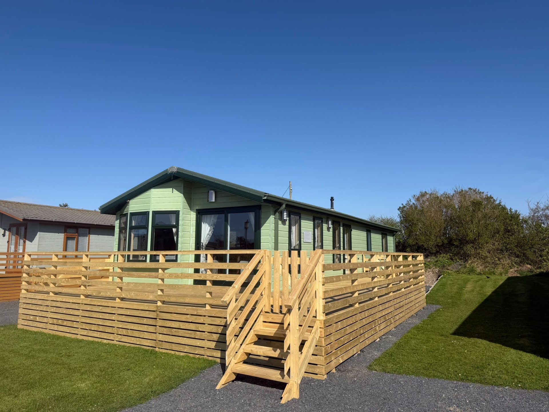 Sited in a small gated quite area of the park on Timber wood close. This lodge comes complete with a Brand new large  decking, huge parking area and fantastic views of the Lake District Mountains, viewing is highly recommend on this one